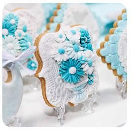 ● 第五天:花萼制作 绣球制作 大丽菊制作 ● 第六天:芍药制作 成品上色成品组装 ● 第七天:饼干配方讲解 糖霜调色 饼干转印底部填充 ● 第八天:饼干脸部化妆 饼干成品制作