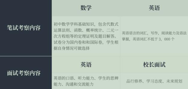 上海 UEC 国际学校入学考试分为笔试(英语,数学)、面试(英语)、校长面试
