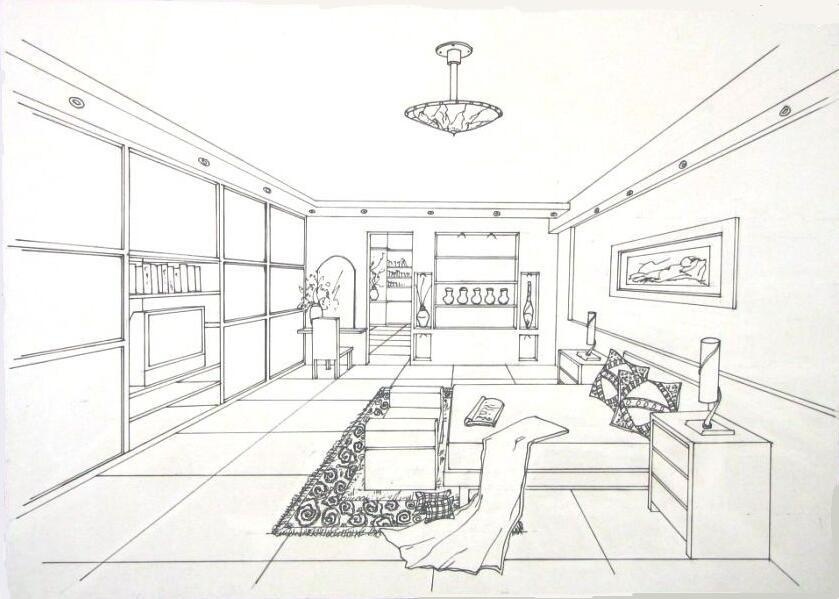 ● 空间绘制家装(尺规制图、徒手表达): 通过透视、线条单体及组合的理解,能够独立绘制出完整的家装手绘效果图 独立绘制出完整的家装空间效果图,同时够徒手表现通过二维的平面转换三维空间