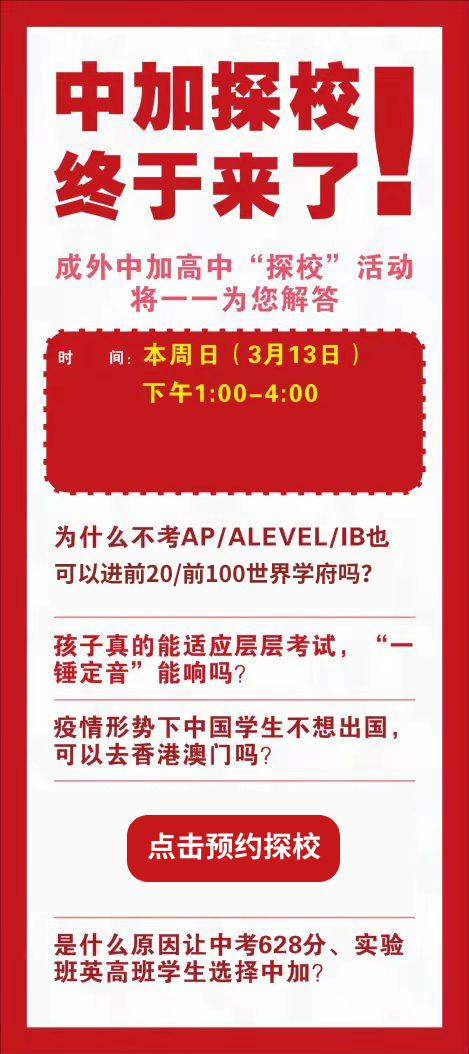 3月13日,中加探校活动来袭!常见问题为您一一解答,点击探校,等你来!
