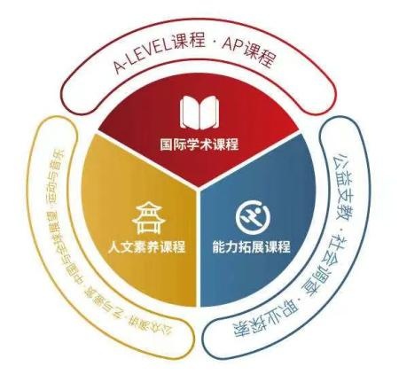 学校构建了对学生培养的“金三角”体系,这个立体的培养体系由“国际学术课程、人文素养课程、能力拓展课程”三部分构成,推动同学个性化的全面成长。