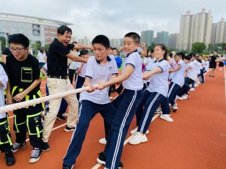 一声哨响,比赛开始。鞋底擦地的沙沙声,拉绳时的呼号声,乘着悠悠暖风,奏成一曲和谐的交响乐。汗水落地迸溅的瞬间,同学们手臂的红印,与融融暖阳,汇成一幅“团魂”长卷。