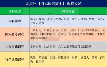 北实外【日本国际高中班】是由北京市实验外国语学校携手日本本土也是一所由私塾建立的日本语言学校【行知学园】于2019年共同创办,学制三到四年,学生要学习国内高中全部必修课程和日本留学考EJU课程(留学生统一考试),学生零起点学习日语,参加日语能力JLPT考试,在毕业时可以拿到日语二级N2或一级N1,同时,学生也会学习托福TOEFL课程,无需校外培训,并取得国内高中毕业,在高三毕业后由行知学园负责推荐院校,办理全部申请手续,较终以留学生身份顺利升入日本大学。