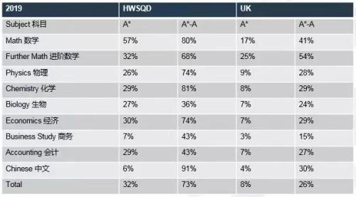 视线拉回到疫情前,我们再来看看2019年的A-level各科成绩对比,宏文学校青岛校区的老师们,教学实力有多强?