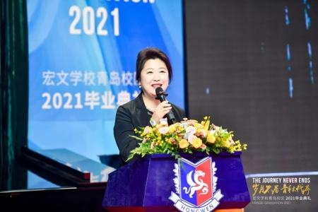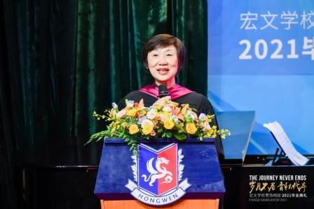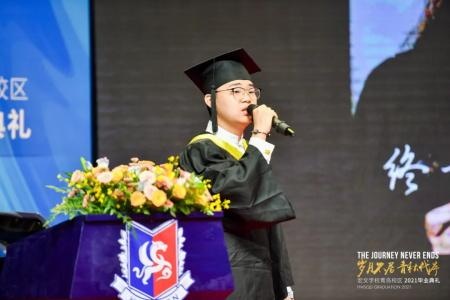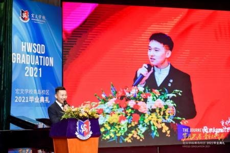 这是属于2021毕业生的盛典,个上台发言的是曾任学生的毕业生代表Snow李欣雨。这个娇小的长发女孩,用自己所经历的挫败、荣誉、责任,讲述了与众不同的宏文收获,并对学校管理团队和老师们表示了诚挚的感谢。