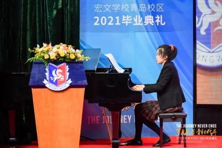 一段在校生送上的毕业演出,为本场盛典增色不少。来自G2年级的Sonya 王楚涵现场演奏了贝多芬名作《月光奏鸣曲》。