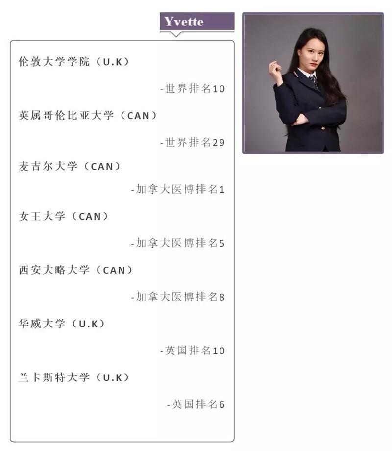 以我个人为例,我同时申请了英国和加拿大,目前已收到加拿大麦吉尔大学、UBC大学、皇后大学、西安大略大学及英国UCL、华威大学和兰卡斯特大学的七封offer。综合考虑后,我选择了加拿大的UBC大学,因为在我们选择大学的时候考虑的不仅仅是这个学校的排名,同时也会考虑到专业排名、学校环境及往返是否便利等问题,而A level的这种全球认可度就让我们有机会选择到较适合自己的大学。 在规划过程中,我的规划指导对我的申请真的是尽心尽力,不仅耐心地为我分析各个大学的利弊、解答我的问题,更是帮我修改文书、与我一同准备大学的面试,给了我很多宝贵的经验和建议。所以取得今天这样满意的录取结果,我真的非常感谢我的规划指导。