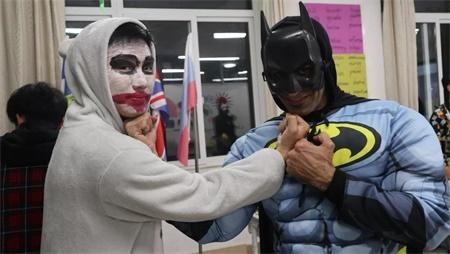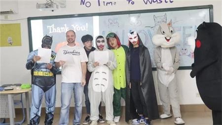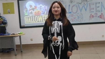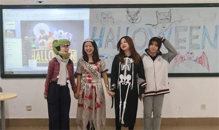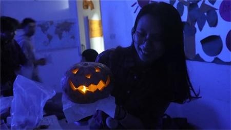 活动前孩子们做了充足的准备,提前画好了鬼魔妆,关上灯等待着活动的开始。活动首先在外籍教师houtan的激情展示中拉开了帷幕,他通过一张张丰富的图片和诙谐的语言向大家展示了万圣节的历史及西方的庆祝活动,使现场的每个人感受到了浓浓的节日气氛。