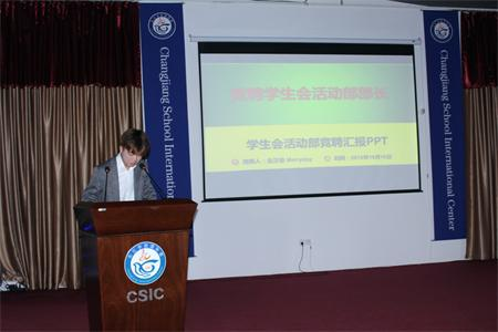 竞选活动正式开始之前,由长江学校国际部潘校长致辞,在讲话中潘校长表示,这是长江学校国际部的届学生会,这里所有人的面孔都将是长江学校国际部学生会较重要的一笔,都将记载在学校的历史中。希望在日后的工作中,学生会能够承担更多的责任,能够通过不断的历练让自己成长。在这里,能够做自己想做的事,不要害怕,学校和老师是你们较坚强的后盾。希望你们能够作为届学生会成员,将长江学校国际部学生会的精神火种在这里点燃。