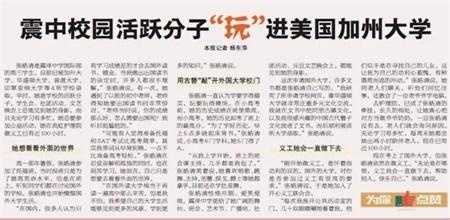 江苏省震泽中学 → 芝加哥大学、斯坦福大学、宾夕法尼亚大学、杜克大学、西北大学、康奈尔大学、圣路易斯华盛顿大学、南加州大学、加州大学伯克利分校、弗吉尼亚大学……这是今日新时代震中人求索奋进的新征程。