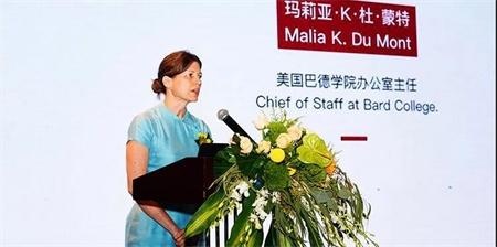 发布会上美国巴德学院办公室主任 Malia Du Mont介绍了美国巴德学院悠久的历史、教育理念和取得的卓越成就,以及被美国前总统奥巴马盛赞的创新教育模式—巴德青年学院的办学理念和教育特色。