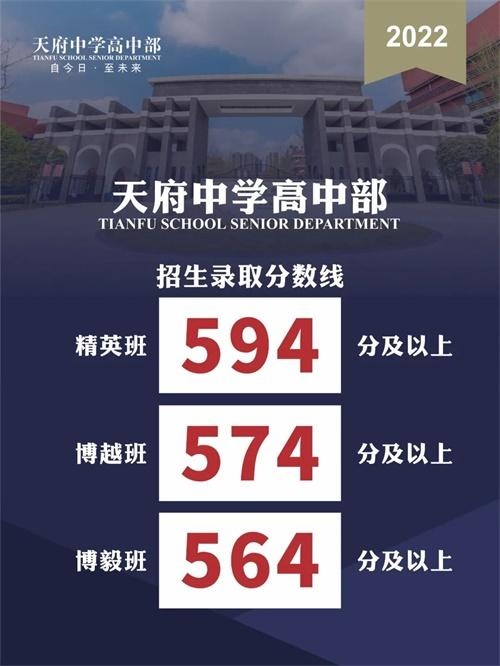 天府中学高中部2022年招生录取分数线公布