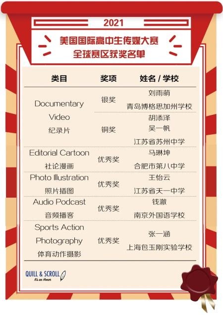 恭喜博格思学校11年级刘雨萌同学获得被誉为“高中普利策奖”的2020-2021年美国国际高中生传媒大赛全球银奖!(纪录片类别)今年国内仅7人在该赛事获全球奖项,刘雨萌同学所获的全球银奖,不仅是中国学生在该赛事中所获成绩,同时也是纪录片类别全球的一枚银奖!