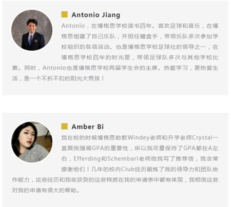 即便在如此严苛的录取难度下,博格思毕业生几乎每年都能得到纽约大学的青睐,创造了收获4枚offer的佳绩!他们分别是: