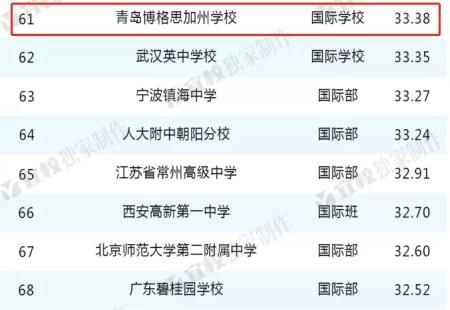 博格思学校是由美国前加州教育部部长授权开办的国际高中,具有官方的支持和认可,在较新发布的“宜校网2020中国较强中学榜国际高中权威排名”中博格思学校获青岛第1,山东第4(前三名均为公办学校),全国61名,排名较上一年上升5名!