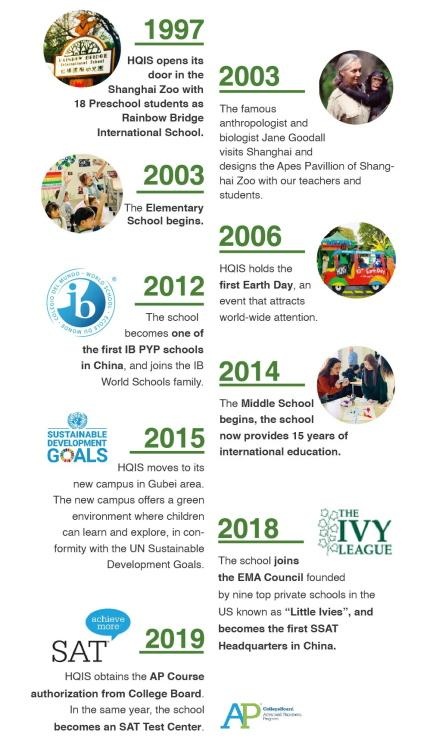 经过23年脚踏实地的办学,目前HQIS已经发展成集幼儿园、小学、初高中于一体,15年一贯制的综合性国际学校,是上海历史较久的国际学校,目前在校生来自35个国家和地区。