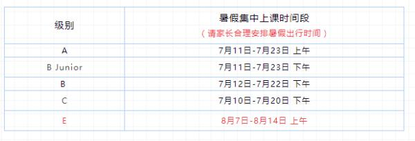 4、开班上课,暑假集中授课时间安排如下: