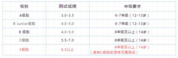 标准及内容:参照欧洲语言教学评估共同纲领Common European Framework of Reference for Languages (CEFR),基于水平考试成绩(含听力、阅读)和学生年级,将学生划分为以下级别: