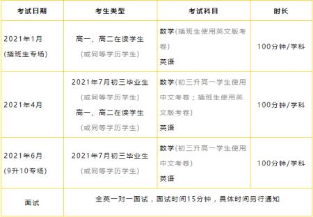 1、欢迎志存高远的优秀初三学生及同等学历的学生(如:国际课程体系IGCSE课程G1, IB课程Pre-DP1,海外高中九年级学生等)积极报考;学籍、户籍不限;