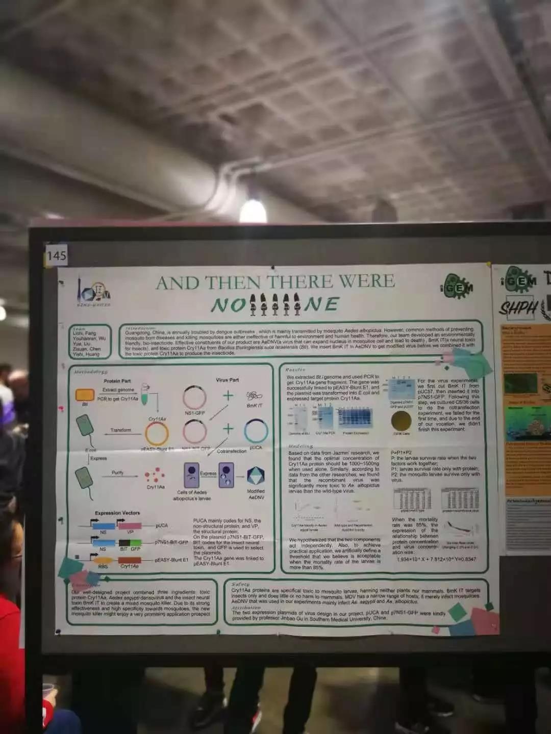 作为高中生,参加iGEM竞赛的全过程是煎熬并快乐的。一切来的并没有想像的那么简单。IGEM不仅是生物这么简单。初识比赛时的雄心壮志,参加培训后的跃跃欲试,次进实验室的好奇,15次也提不到基因的绝望,读英文论文时的煎熬,抽出一小片质粒的欣喜若狂,网站ddl前的凌晨三点,飞机上集队改稿子的废寝忘食,在会场看海报时的孜孜不倦,答辩时的紧张与专注,游览波士顿时的闲庭信步,穿上队服大合照时的千头万绪,五味杂陈。