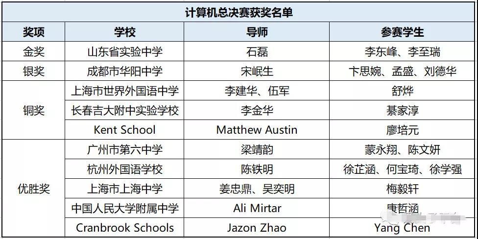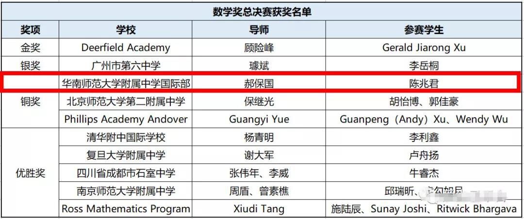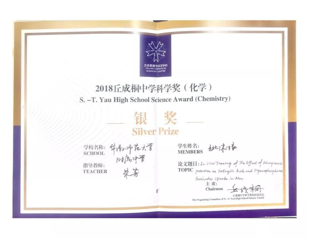 华附国际部2018丘成桐中学科学奖获奖情况(按学科排序):