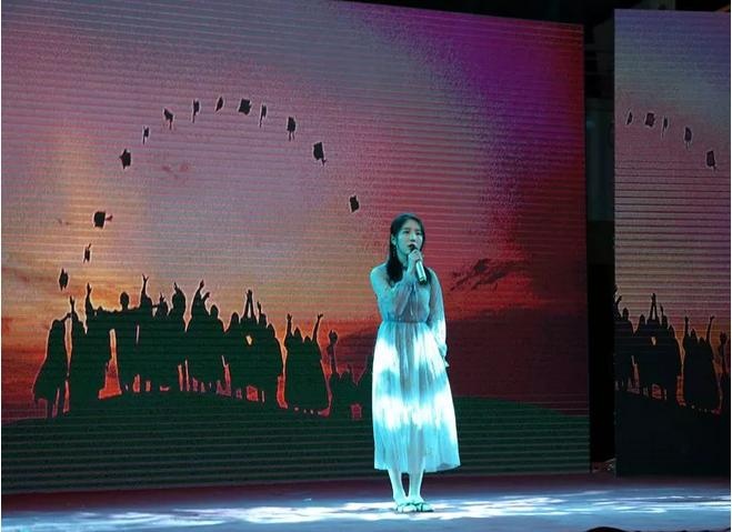同班的人气歌手蒋文浩用专业而迷人的歌声让大家沉浸在如梦似幻的爱情中,台下荧光棒整齐划一地挥舞,全情投入,唯愿长醉不愿醒。