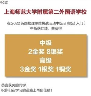 上师大附二外国际高中学子在2022英国物理思维挑战赛中捷报频传,斩获: